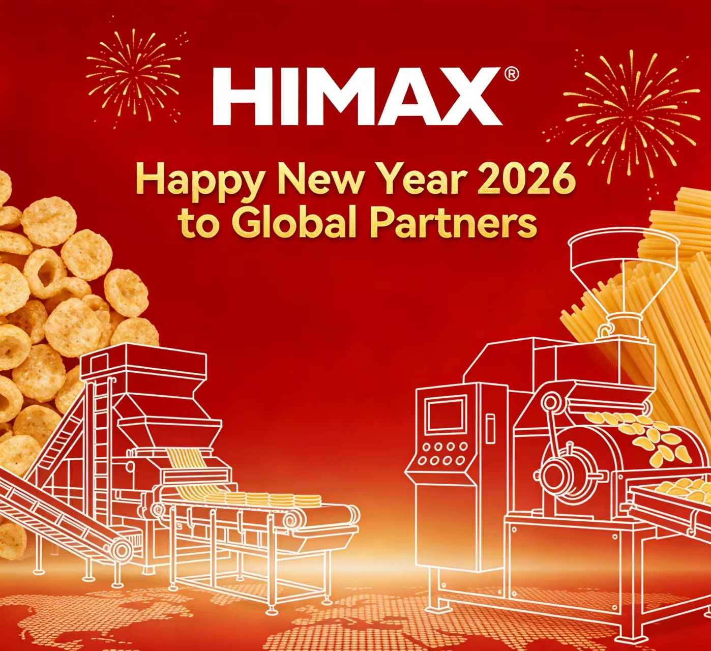 Năm mới báo trước những khát vọng mới và khuyến khích những cơ hội “ẩm thực” mới.. Khi vào 2026, HIMAX sẽ tiếp tục nâng cao kinh nghiệm của mình trong lĩnh vực máy móc thực phẩm, tập trung vào phát triển thông minh, năng lượng hiệu quả và bền vững. Chúng tôi sẽ kiên trì đầu tư vào R&D để đưa ra các giải pháp hiệu quả hơn, linh hoạt và phù hợp với nhu cầu sản xuất thực phẩm trong tương lai, cùng nhau giải quyết những thách thức và yêu cầu mới của thị trường toàn cầu.