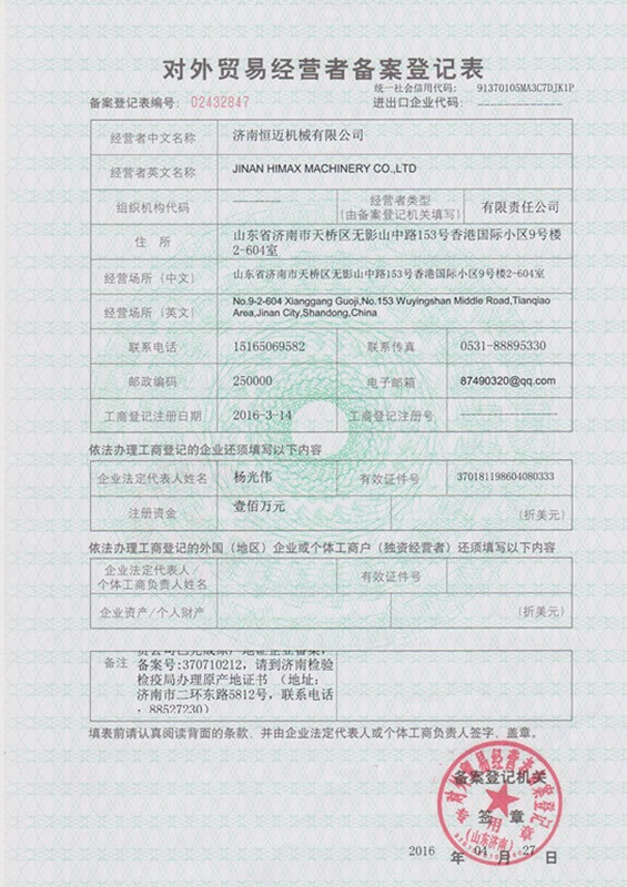 Registration form for foreigntrade managers